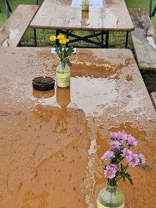 So wechselhaft wie das Wetter – so konstant die gute Stimmung. Wir danken allen Gästen die tapfer den nassen Samstag mit uns verbracht haben. Die super Musik von „Just for Fun“ lockte am Abend sogar Tanzwillige auf die Tanzfläche. Barkeeper Martin und Barfrau Jutta – ein perfektes Team – taten alles um die Stimmung im Inneren warm zu halten. Leider war das Wetter immer missgelaunter und wir mussten vorzeitig abbrechen. Die Sonne am Sonntag gab dann alles und dank unseren Feunden vom Musikverein Tamm unter der Leitung von Rainer Scheck, wie immer in großer und großartiger Besetzung, füllte sich die Festwiese erfreulich schnell. Schon ab 13.00 Uhr begann der Sturm auf das grooooße Kuchenbufett unserer begnadeten Bäckerinnen und es blieben nur Krümel übrig. Der Name Sommerfest passte somit doch noch perfekt.
