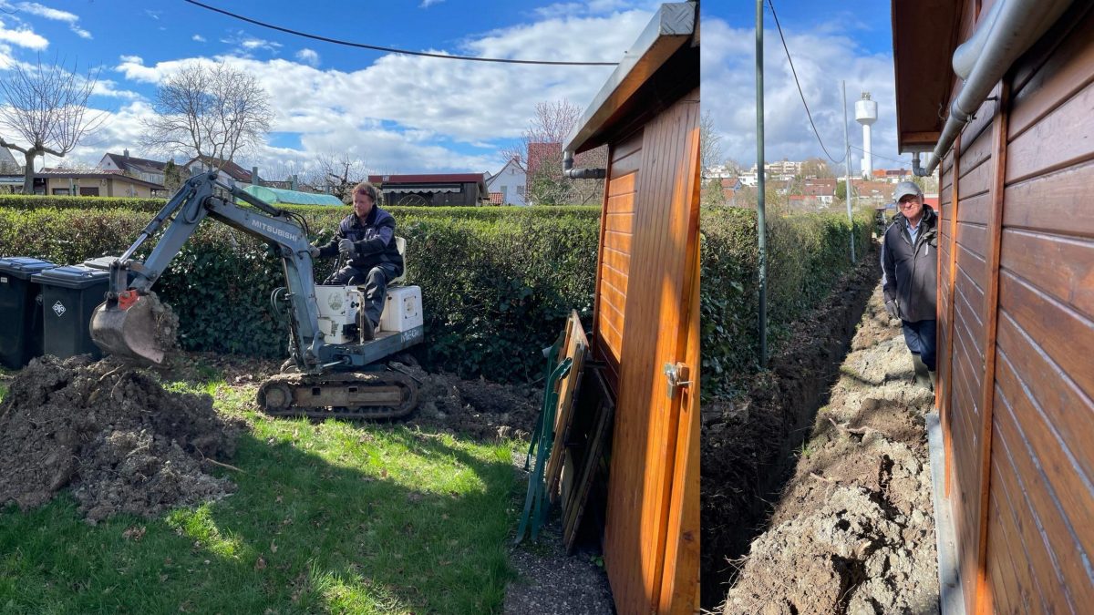 Die Stromanlage ist in die Jahre gekommen, seit der Gründung der Kleingartenanlage im Jahr 1947. Bereits seit dem vergangenen Jahr wird fleißig an der Erneuerung gewerkelt, da ein Teil der Gartenanlage nicht mehr mit Strom versorgt werden konnte. Am Samstag, dem 16.03.2024, kam der Bagger und von 10.00-17.00 Uhr wurde gewühlt. „Bauleiter“ Gerhard Fleischer hatte seine Augen überall und legte auch selbst mit Hand an.